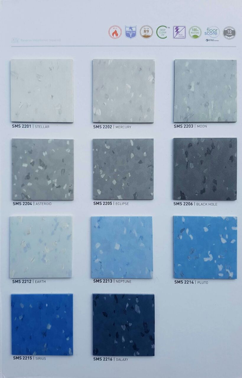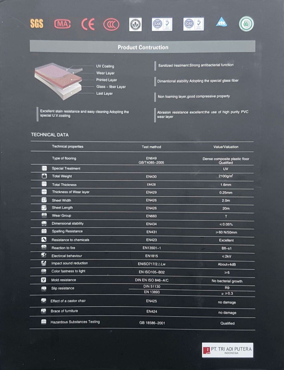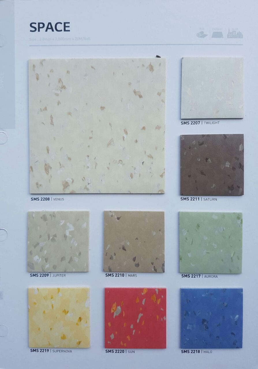 Lantai vinyl roll ini memiliki struktur Deep Clead UVTM, dan High-Desity PUR Treatment. Vinyl roll Space ini juga sudah dilengkap dengan fitur anti bakteri, anti bahan kimia, serta lebih mudah untuk dibersikan tentunya.